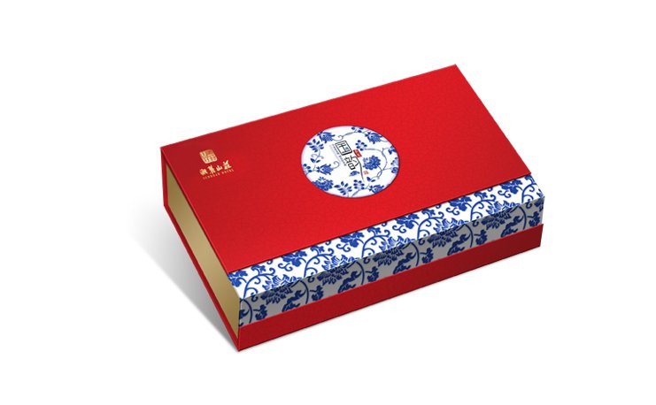 國韻包裝禮盒,采用國韻二字,以中國紅為主色,配以青花圖案為輔助,看起來富貴高雅,是送禮之上品。