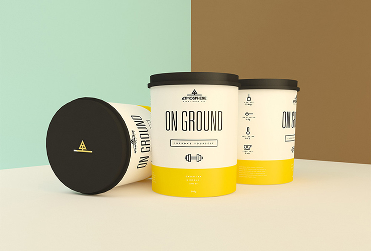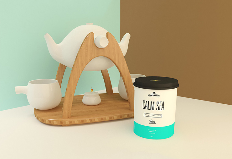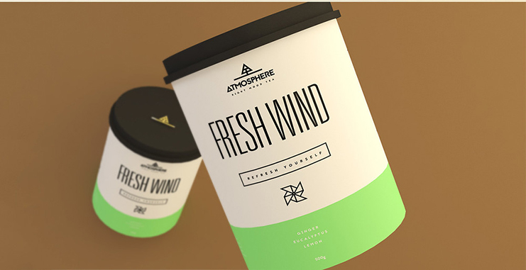 在密閉的圓柱形容器內(nèi),保持茶葉內(nèi)新鮮。每個(gè)品種都有一個(gè)好名字,意味著它所代表的元素,像“火”和“清新的風(fēng)”。茶類寫的是一個(gè)又高又瘦的無(wú)襯線字體,他們都具有代表性的圖標(biāo)。茶蓋的標(biāo)志,一個(gè)幾何樹站在一個(gè)景觀,也看起來(lái)像字母“A”的