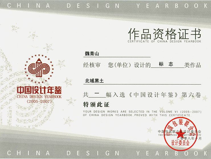 上海紅門包裝設(shè)計總監(jiān)魏青山入選“中國設(shè)計年鑒”。標志類作品北域黑土。